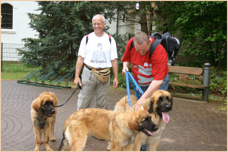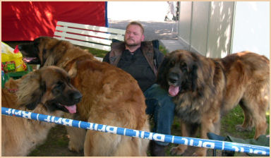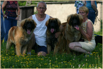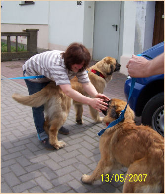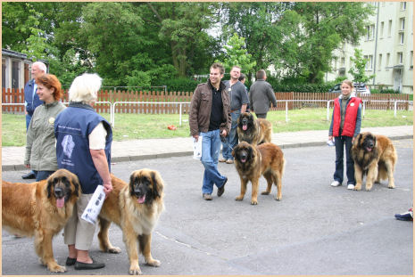 | Und wieder ging es nach Tschechien und wieder waren Alisa, Bissi und Duke dabei. Litoměřice ist wohl die einzige CACIB Schau, die etwas grünen Rasen zu bieten hat, so wurde uns berichtet, daher ist dort auch immer sehr viel los. Auch die Leos waren dieses Mal draußen dran, die Sonne meinte es sehr gut mit uns, es war sehr warm und die Schattenplätze waren sehr knapp!!! Aber wir hatten Glück und einen guten Platz erwischt. Und das war auch bitter nötig, denn vor den Leos waren im Ring wieder andere Rassen dran und es wurde früher Nachmittag, genau zur vollen Mittagssonne waren dann die Leos dran. Da ich bei den Anmeldung zur Schau keine Ahnung hatte, wer dort die Leos richten würde, haben wir nicht schlecht gestaunt, als wir wieder vor Herrn Karel Horák standen. Und auch dieses Mal konnte unser Trio überzeugen: Duke lief in der Offenen Klasse bekam V1 CAC/Res.CACIB, Bissi lief in der Championkl. auf V2 und bekam die Res.CAC & unser Lieschen lief wieder in der Offenen Kl. auf V1 bekam CAC/CACIB, somit hat sie die Bedingungen für den Tschechischen Champion erfüllt und wir warten nun auf dessen Bestätigung. Aber das ist noch nicht alles, unsere Drei wurden wieder von sehr vielen Besuchern bestaunt, geknuddelt und fotografiert, auch von Frau Z.Samkova, sie entwirft Kalender und Bücher. Sie schoss Fotos von unseren Drei die in einem Kalender für das Jahr 2009 abgebildet werden sollen. Wir sind schon sehr gespannt. | |
