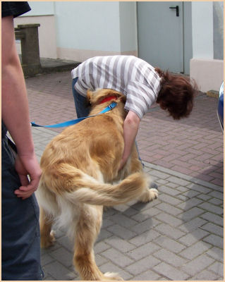 | Wir hatten Besuch... im Februar zog Cassy mit Luischen nach Weißenberg in ihr neues Rudel. Cassy hat sich dort ohne Schwierigkeiten sehr gut eingelebt. Nun wagten Cassys neuen Leute den Versuch uns zu besuchen. Cassy merkte gleich, als sie aus dem Auto sprang, wo sie ist, mit erhobener Nase kam sie die Straße hoch. Dann sah sie mich... ein kurzes Stocken... dann zog sie los, sie hatte uns wieder erkannt und fühlte sich auch gleich wieder zu Hause. Sie sieht wunderschön aus! Aber da war ja noch Luischen und sie war ganz schön gewachsen und auch wunderschön! Wir verbrachten gemeinsam mit Emma, die uns regelmäßig auf dem Hundeplatz besucht, und ihrem Herrchen, Frauchen musste leider arbeiten, einen wunderschönen Tag im Bernburger Tiergarten. | |