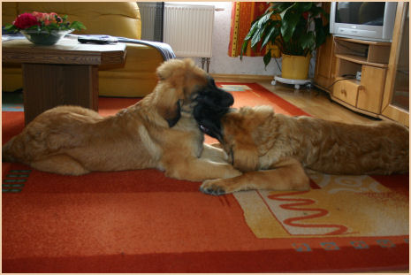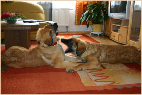 | Enji ist nun im schönen Harz bei Kerstin & Matthias in Wippra zu Hause und wird ihrer neuen Familie, wie uns, sehr viel Freude bereiten. | Eyka zog zu ihrem großen Bruder "Leo" (Chester) & Torsten, Silvia & Gerhard in den schönen Auenwald nach Baden Württemberg. Wir haben die etwas über 1000 km nicht gescheut und sie selber in ihr neues zu Hause gebracht. Natürlich haben wir das aus "Eigennutz" gemacht, wir hatten uns schon sehr gefreut Chester einmal wieder zu sehen und was sollen wir sagen, er ist ein Prachtkerl geworden, seiner Oma Tessa wie aus dem Gesicht geschnitten. Mehr Fotos auch auf seinen Seiten (C-Wurf) im Fotoalbum. |